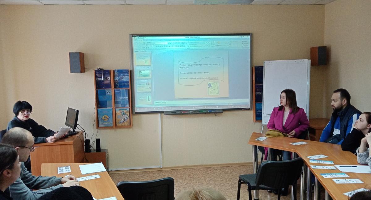 Фахівець з профорієнтації Галина Дишлі презентувала можливості підвищення професійного рівня за допомогою ваучера, професійного навчання в центрах професійно-технічної освіти Державної служби зайнятості, в тому числі на курсах цільового призначення, про дуальне та неформальне навчання, підтвердження кваліфікації. Також вона ознайомила безробітних з Освітнім порталом, поінформувала про профорієнтаційні платформи Державної служби зайнятості для отримання додаткових знань і компетенцій.