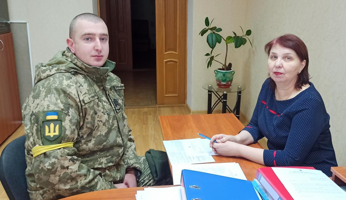 В.о. директора Роздільнянської філії Одеського обласного центру зайнятості Олена Кукішева зустілася з інструктором відділення рекрутингу та комплектування Роздільнянського РТЦК та СП, головним сержантом Андрієм Буймовичем.