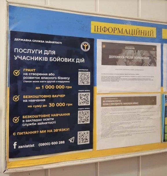 В якості співпраці другим відділом Подільського районного територіального центру комплектування та соціальної підтримки облаштовано інформаційно-роз’яснювальний стенд для ветеранів, який під час зустрічі поповнено новими плакатами і брошурами з тематикою активних програм державної служби зайнятості.