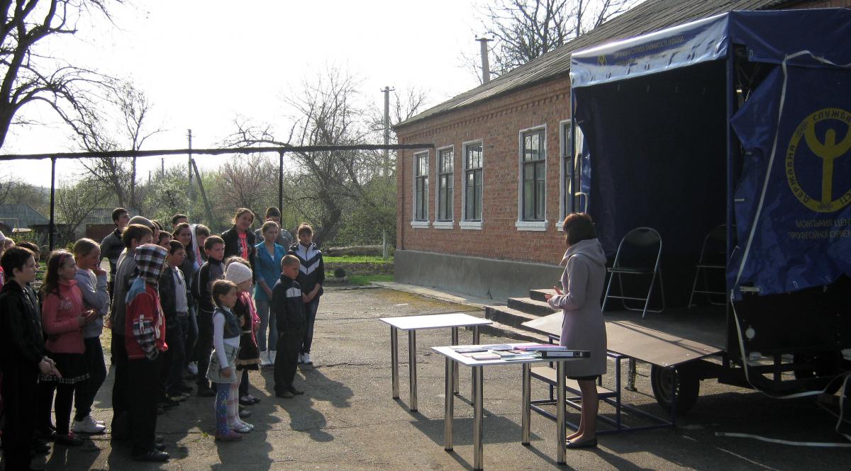 В середині квітня вже традиційно продовжились виїзні заходи з використанням мобільного центру профорієнтації Ананьївською районною філією Одеського обласного центру зайнятості.