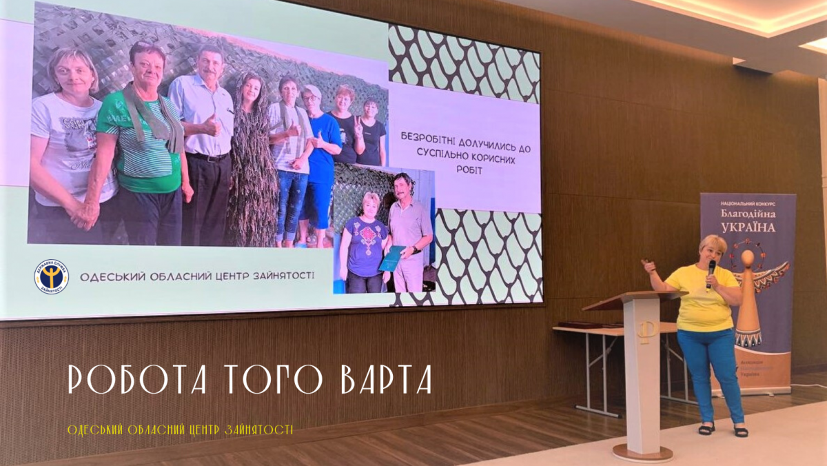 У презентаційних матеріалах на конкурсі Громадська волонтерська організація «Великі серця» висвітила інформацію про співпрацю з Ананьївським відділом Подільської філії Одеського обласного центру зайнятості та усіх гілок місцевої влади щодо організації суспільно корисних робіт з плетіння маскувальних сіток для ЗСУ України.