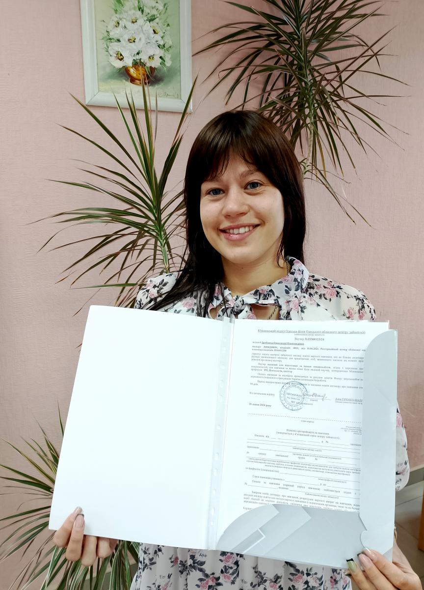 Яскравим прикладом є переселенка з міста Миколаїв – Дробожур Олександра, яка з рідними була вимушена покинути свою домівку. Олександра звернулась до Южненського відділу навесні, де отримала інформаційні та консультаційні послуги, а головне – допомогу у працевлаштуванні. Кар’єрним радником Южненського відділу Майєю Стрельцовою згідно досвіду та освіти Олександри було запропоновано новостворене робоче місце до ФОП Столярчук Катерини Олександрівни, яка отримала грант від Державної служби зайнятості на створення власного бізнесу цьогоріч, на посаду менеджера. Для підтримання конкурентоспроможності на ринку праці Дробожур Олександра після працевлаштування звернулася до Южненського відділу та отримала ваучер на навчання за спеціальністю «Психологія» для отримання ступеню магістра.